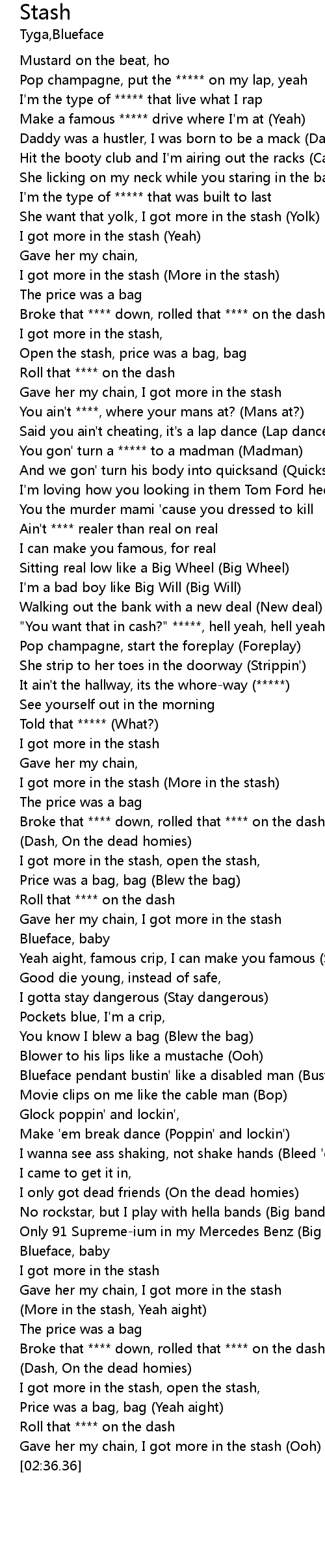 | [02:32.46] | Gave her my chain, I got more in the stash (Ooh) |
