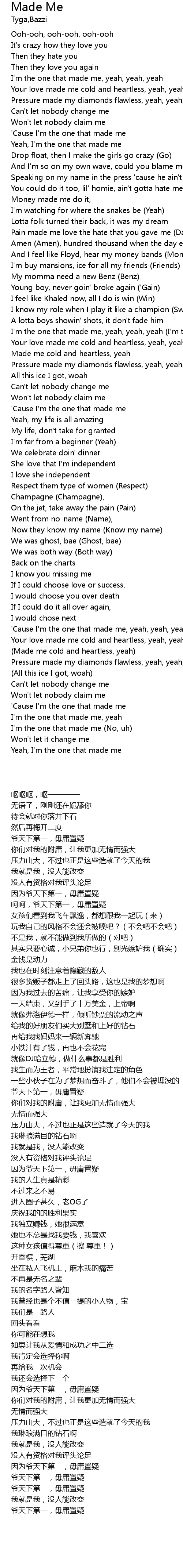 | [01:14.36] | I'm the one that made me, yeah, yeah, yeah (I'm the one) |