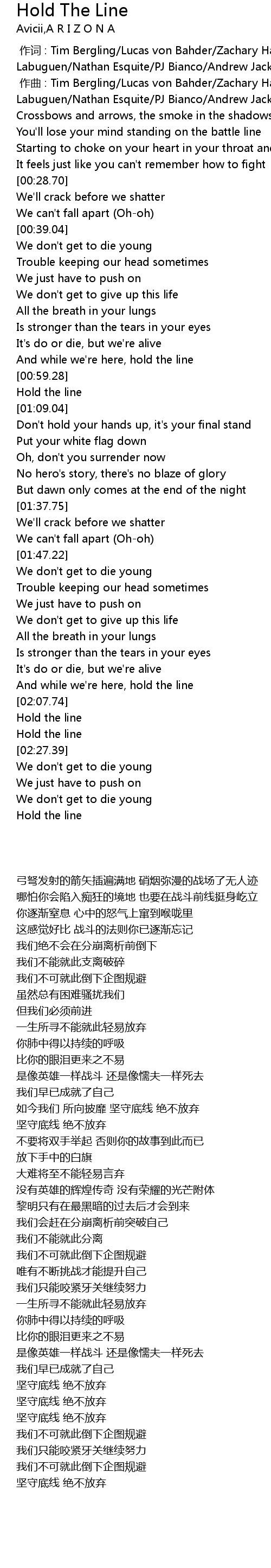 | [00:00.000] | 作词 : Tim Bergling/Lucas von Bahder/Zachary Hannah/David Labuguen/Nathan Esquite/PJ Bianco/Andrew Jackson |