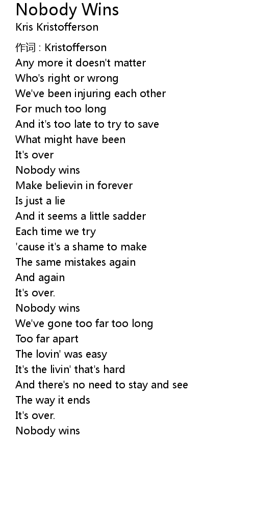 | Song | Nobody Wins |