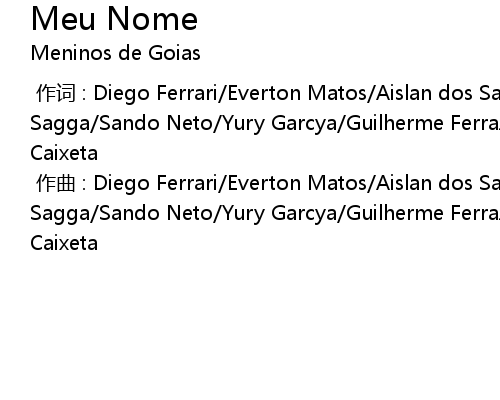 | [00:00.000] | zuo qu : Diego Ferrari Everton Matos Aislan dos Santos Matheus Leo Sagga Sando Neto Yury Garcya Guilherme Ferraz Ray Antonio Paulo Pires Heitor Caixeta |