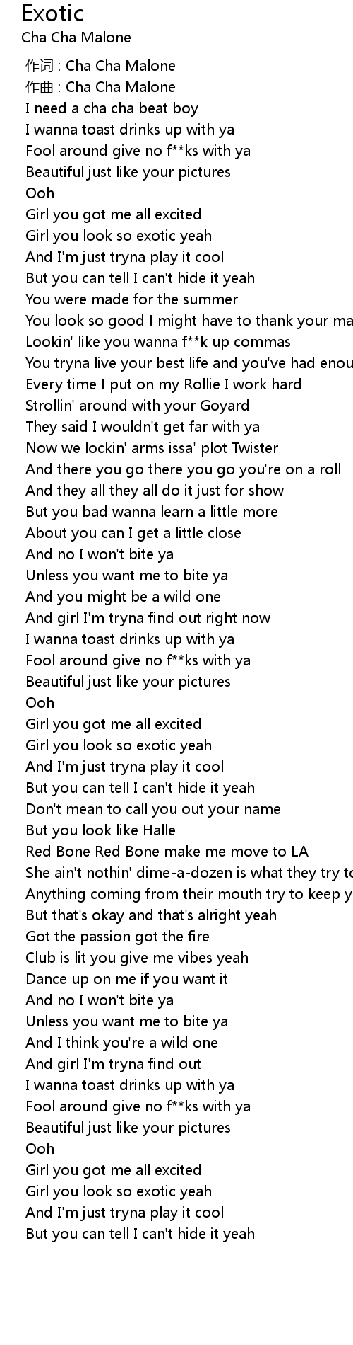 | [00:00.000] | 作词 : Cha Cha Malone |