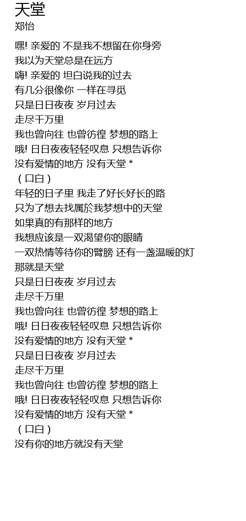 | [00:50.14] | wǒ yǐ wéi tiān táng zǒng shì zài yuǎn fāng |