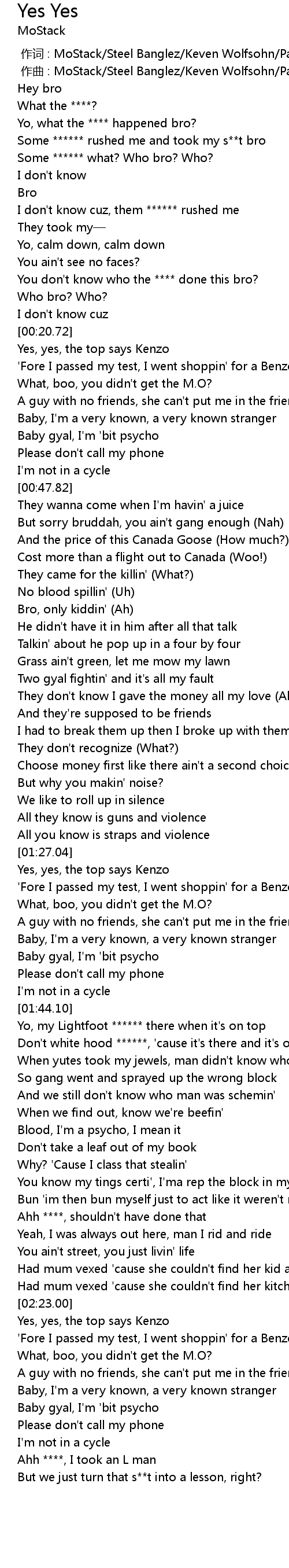 | [00:13.38] | I don't know cuz, them ****** rushed me |