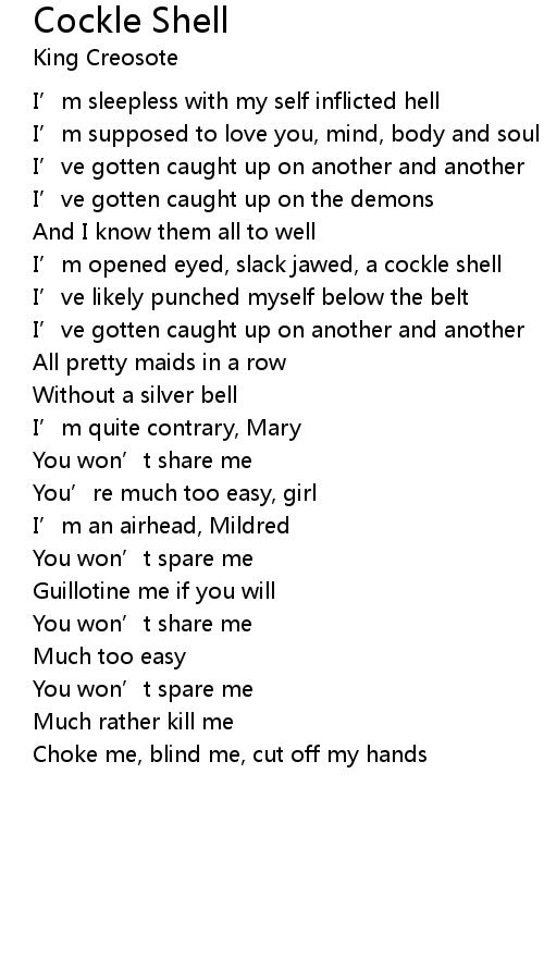 | I’m opened eyed, slack jawed, a cockle shell | |