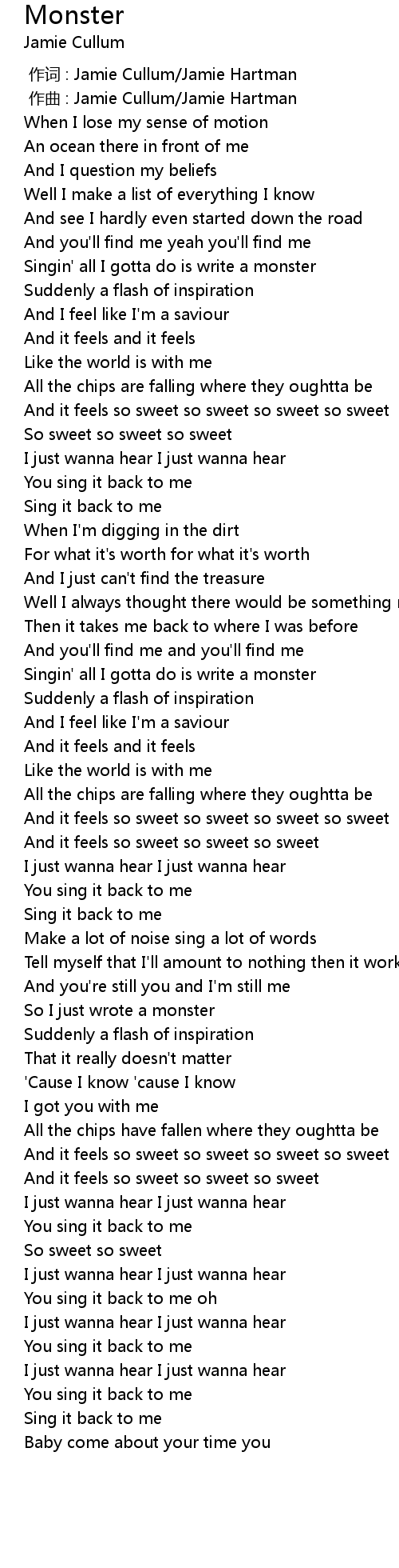 | [01:40.36] | Singin' all I gotta do is write a monster |