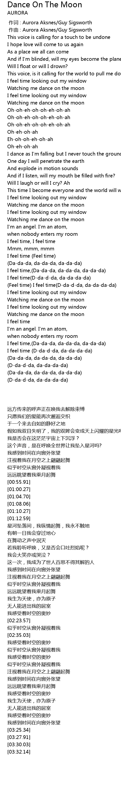 | [00:01.000] | zuo qu : Aurora Aksnes Guy Sigsworth |
