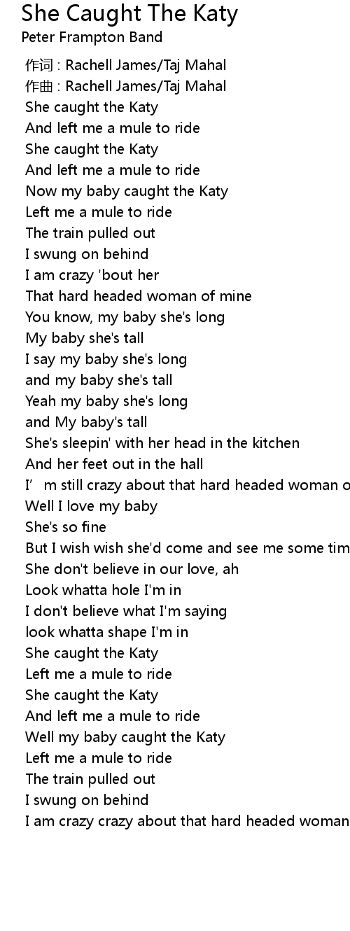 | [01:41.61] | I' m still crazy about that hard headed woman of mine |