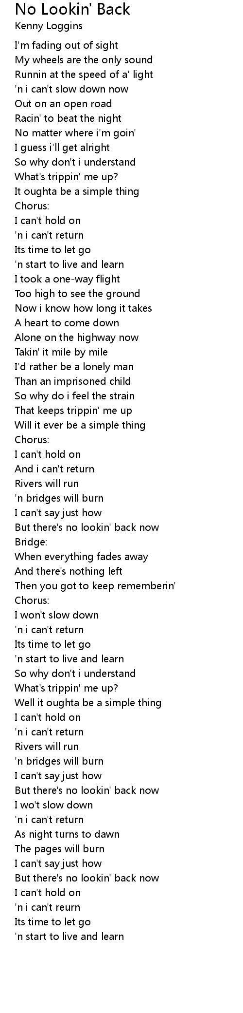But there's no lookin' back now |
