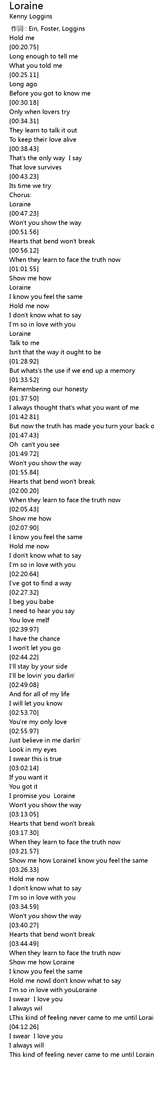 | [00:00.00] | 作词 : Ein, Foster, Loggins |