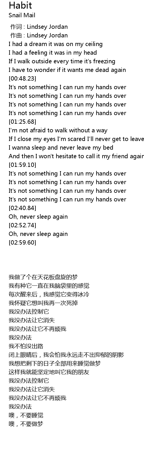 | [01:45.73] | I wanna sleep and never leave my bed |