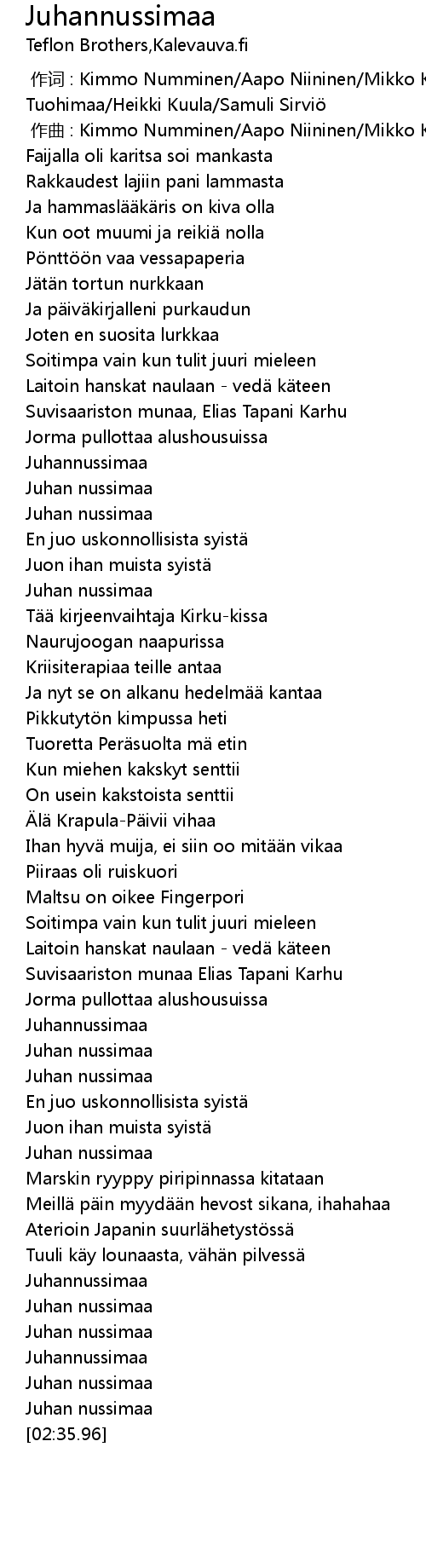 | [01:38.52] | Suvisaariston munaa Elias Tapani Karhu |