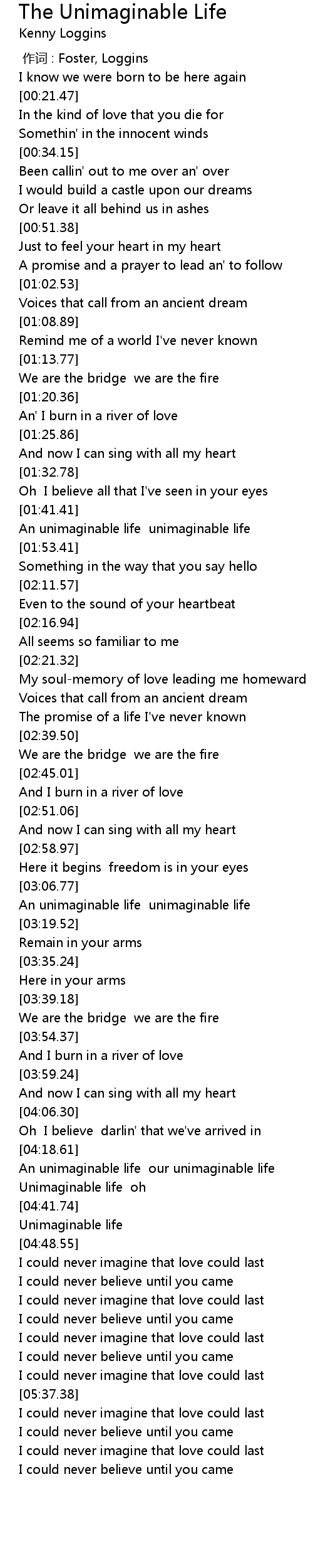 | [04:19.99] | An unimaginable life our unimaginable life |