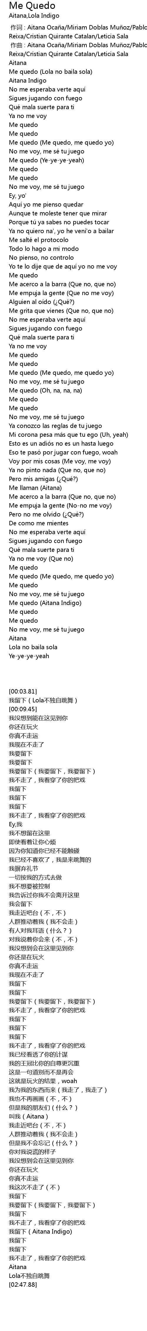 | [02:29.79] | Me quedo (Aitana Indigo) |