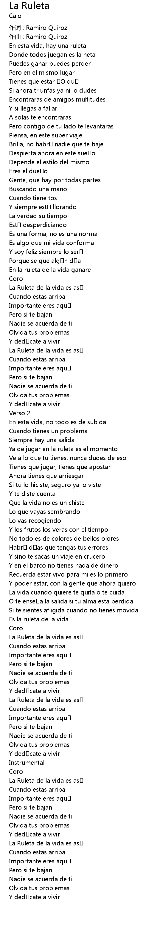 | zuò cí : Ramiro Quiroz | |