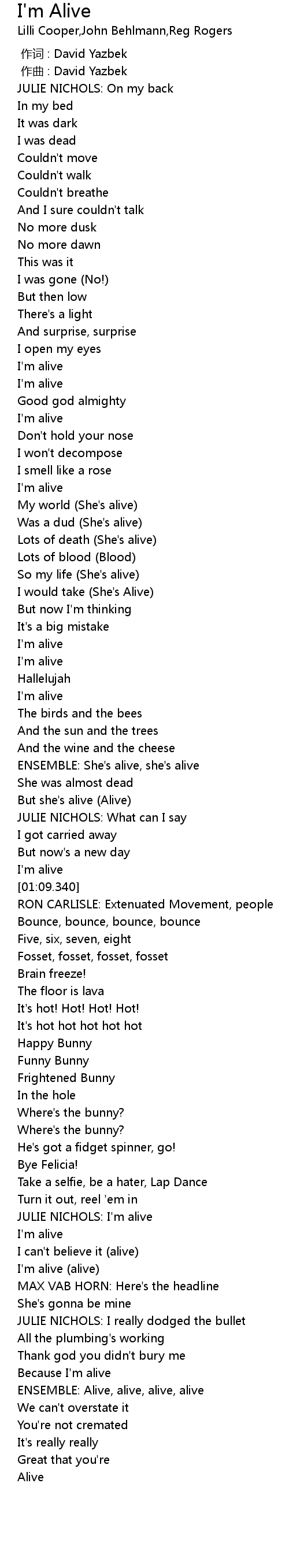 | [02:19.125] | ENSEMBLE: Alive, alive, alive, alive |