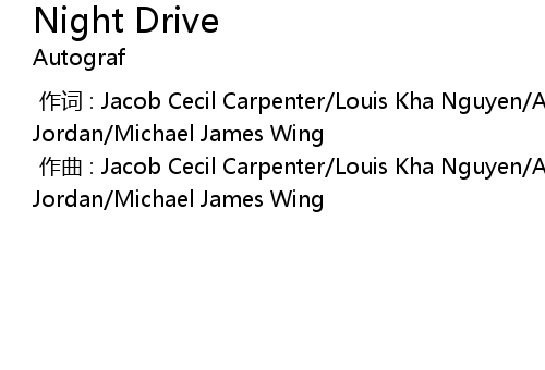 | [00:00.000] | 作词 : Jacob Cecil Carpenter/Louis Kha Nguyen/Alexander Barilan Jordan/Michael James Wing |
