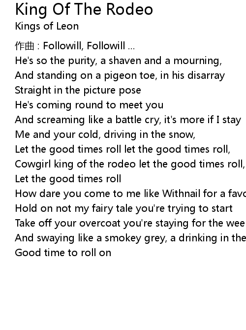 | Cowgirl king of the rodeo let the good times roll, | |