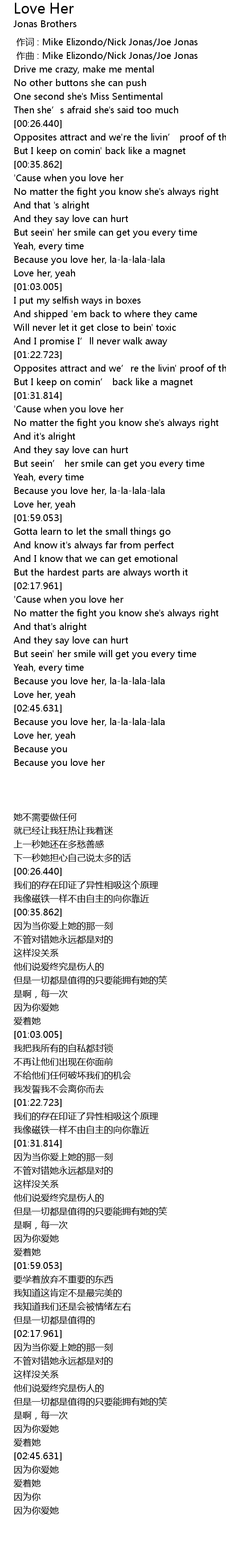 | [00:01.000] | zuo qu : Mike Elizondo Nick Jonas Joe Jonas |