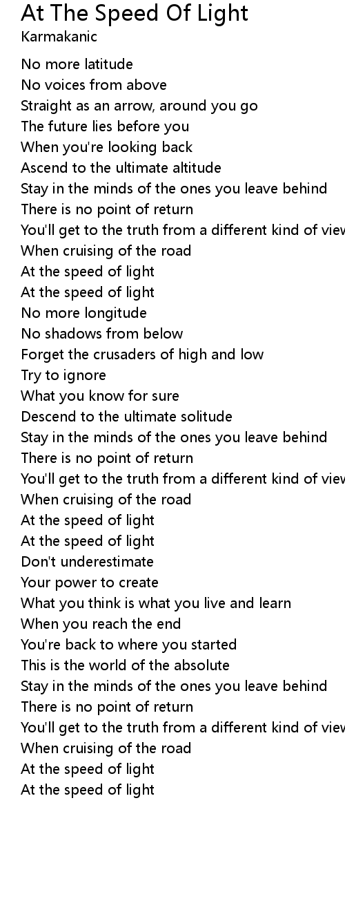 At the speed of light |