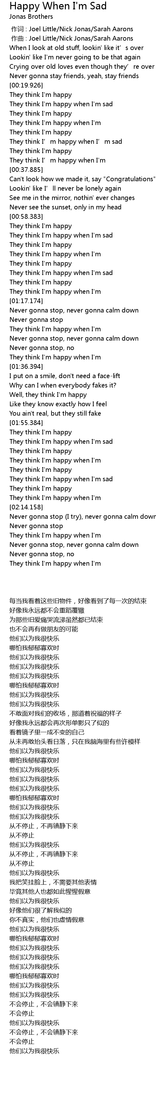 | [00:00.000] | zuo ci : Joel Little Nick Jonas Sarah Aarons |