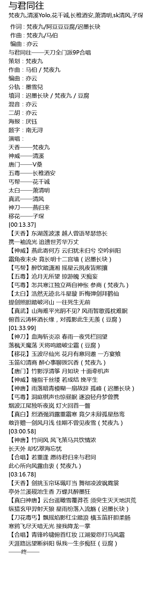 | [00:01.56] | 与君同往——天刀全门派9P合唱 |