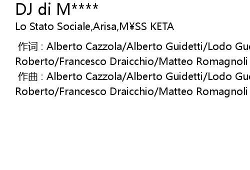 | [00:00.000] | zuò cí : Alberto Cazzola Alberto Guidetti Lodo Guenzi Enrico Roberto Francesco Draicchio Matteo Romagnoli |