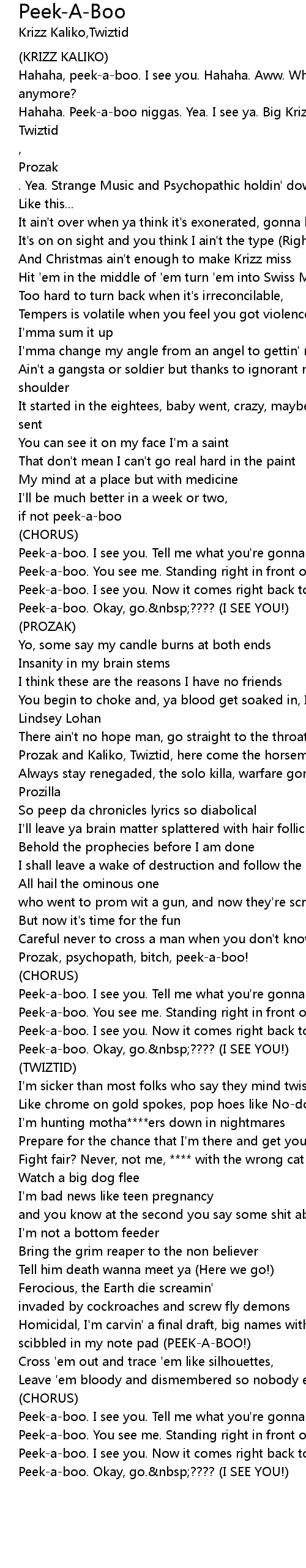 | Prozak, psychopath, bitch, peek-a-boo! | |