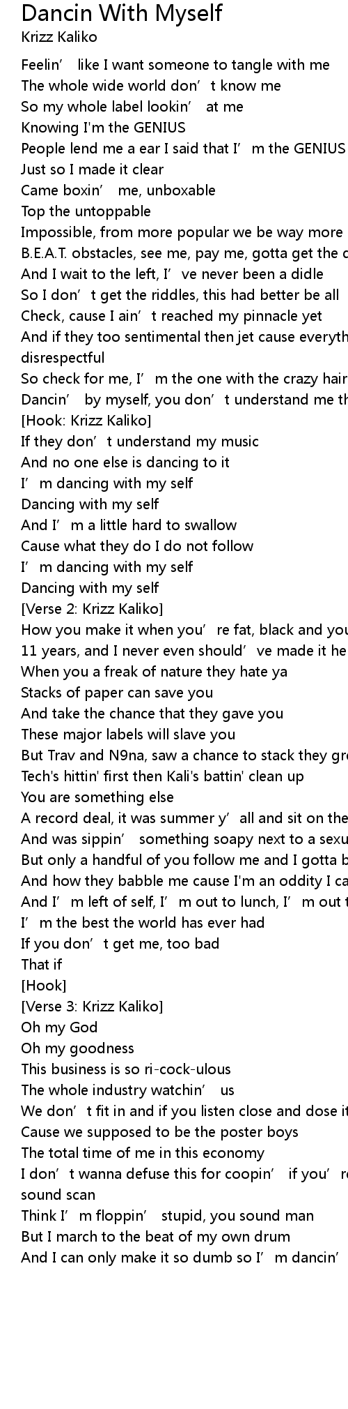 | Dancin’ by myself, you don’t understand me then leave me there | |