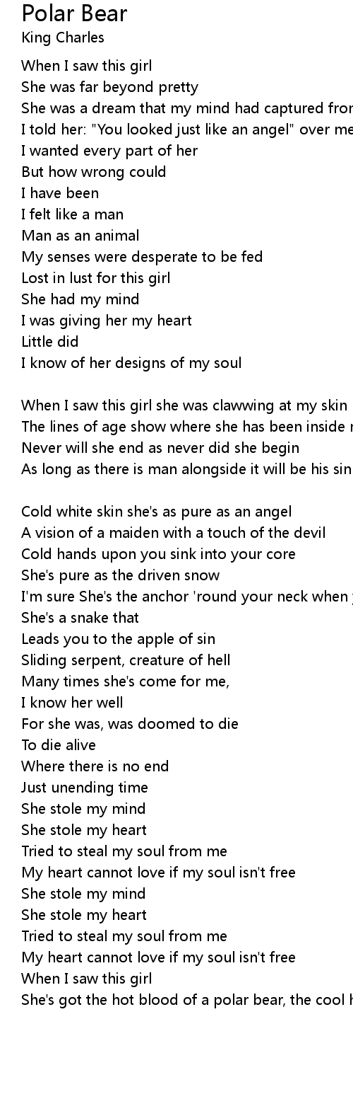 She's got the hot blood of a polar bear, the cool head of a crocodile. [x4] |