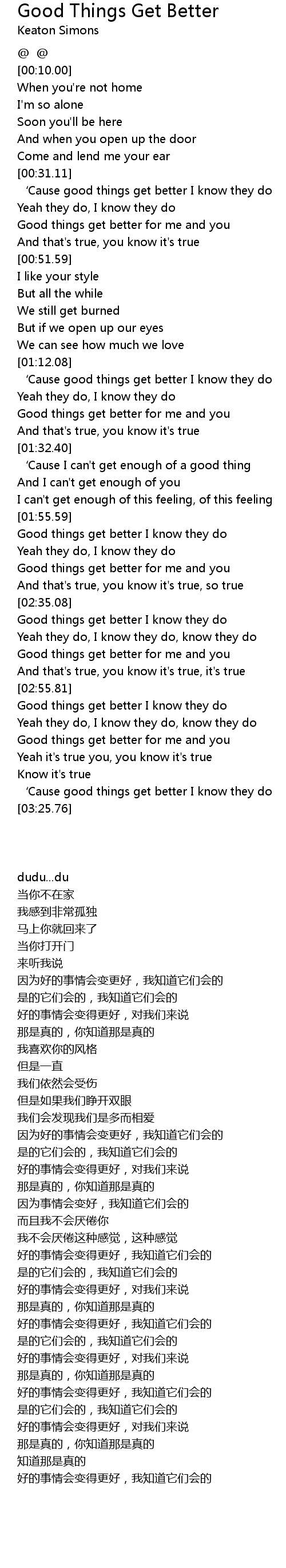 | [03:19.00] | ' Cause good things get better I know they do |