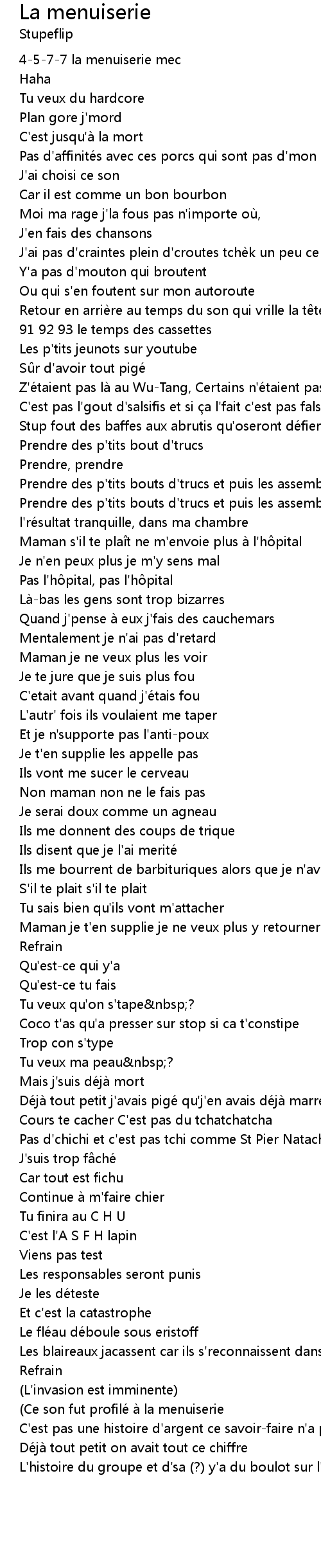 | L' histoire du groupe et d' sa ? y' a du boulot sur l'é tabli |