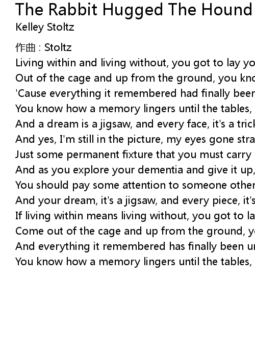 | Out of the cage and up from the ground, you know, the rabbit hugged the hound | |