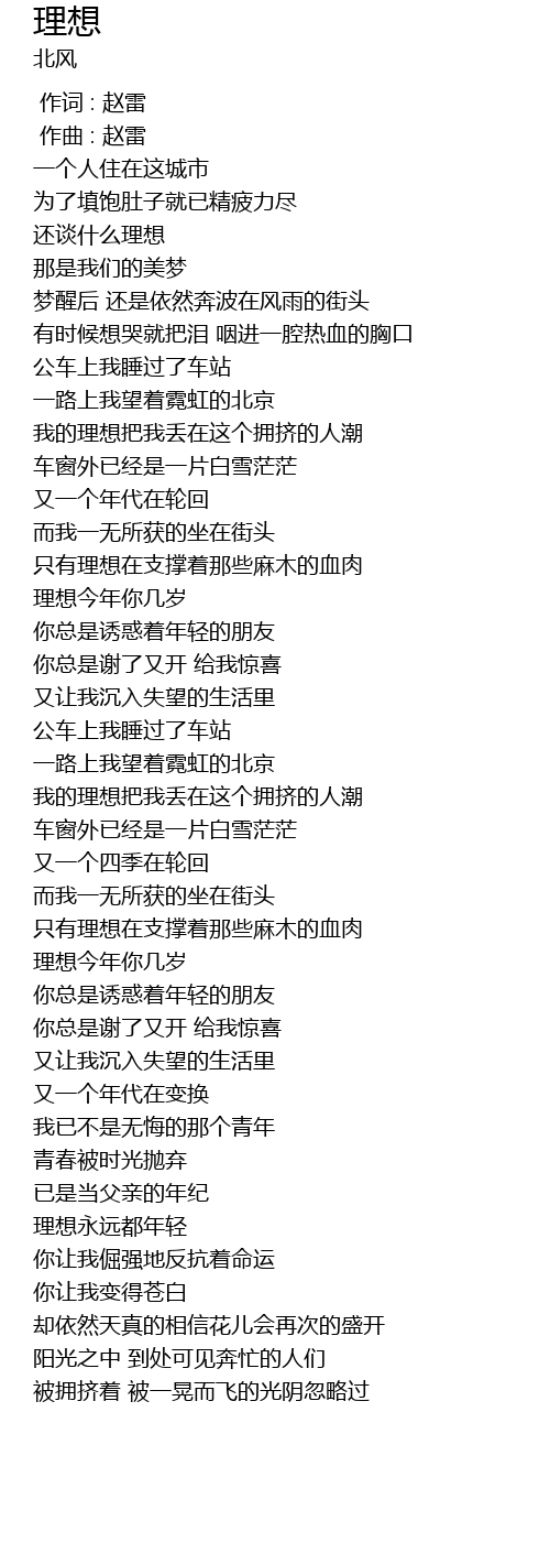 | [00:00.000] | 作词 : 赵雷 |