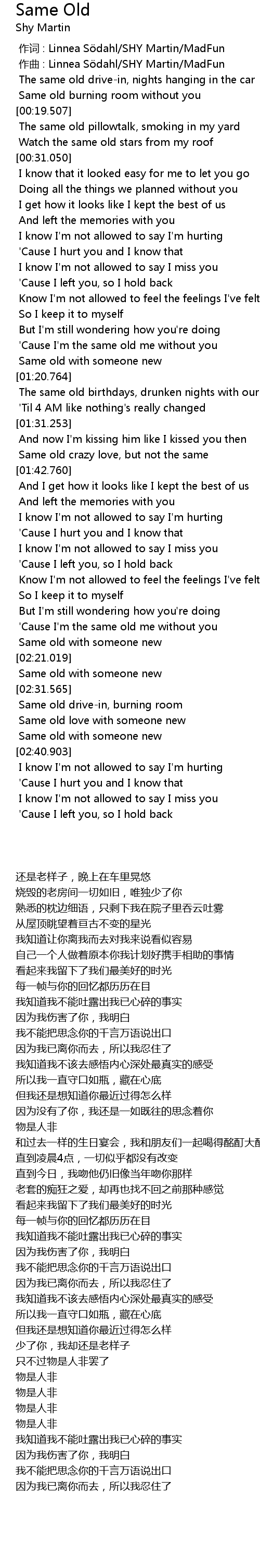 | [02:11.577] | 'Cause I'm the same old me without you |
