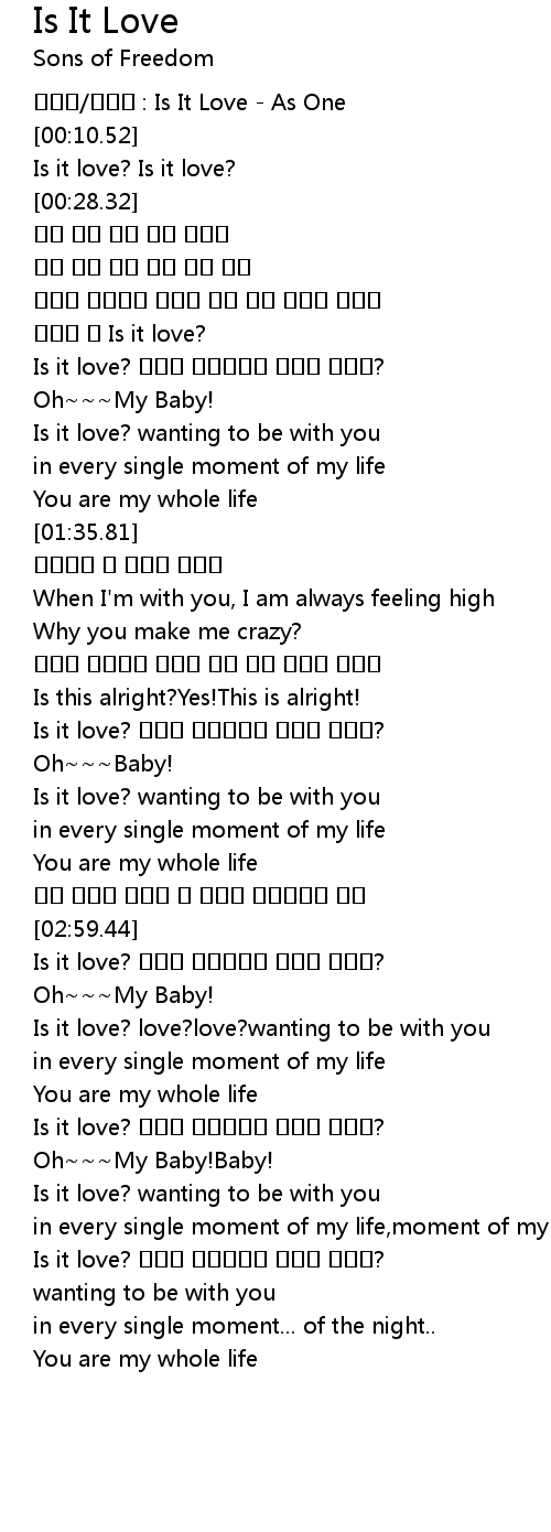| [00:05.69] | 곡제목/가수명 : Is It Love - As One |