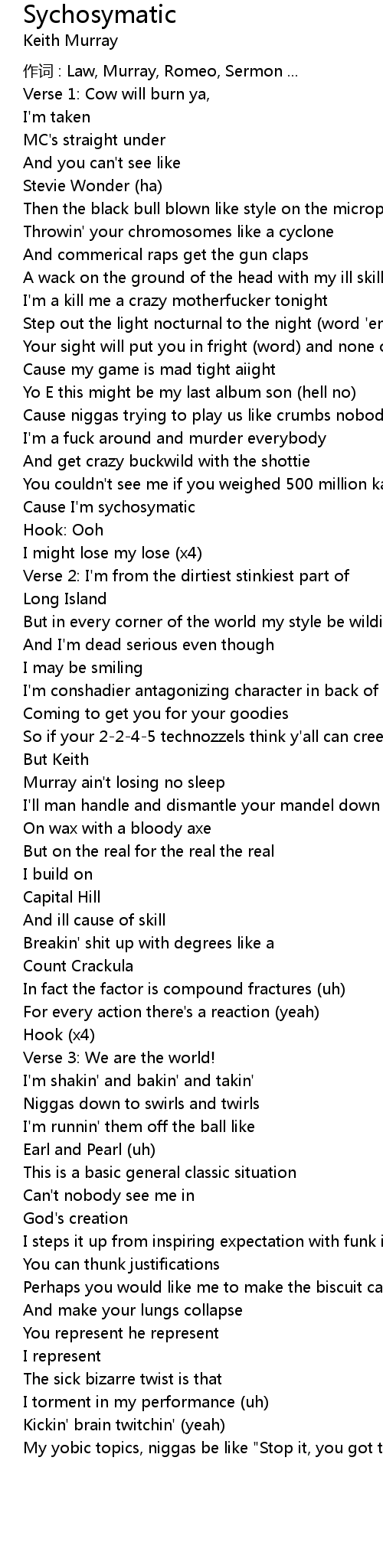 | 作词 : Law, Murray, Romeo, Sermon ... | |
