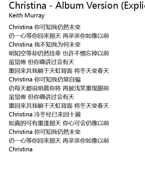 | [00:20.17] | Christina 你可知我仍然未变 |