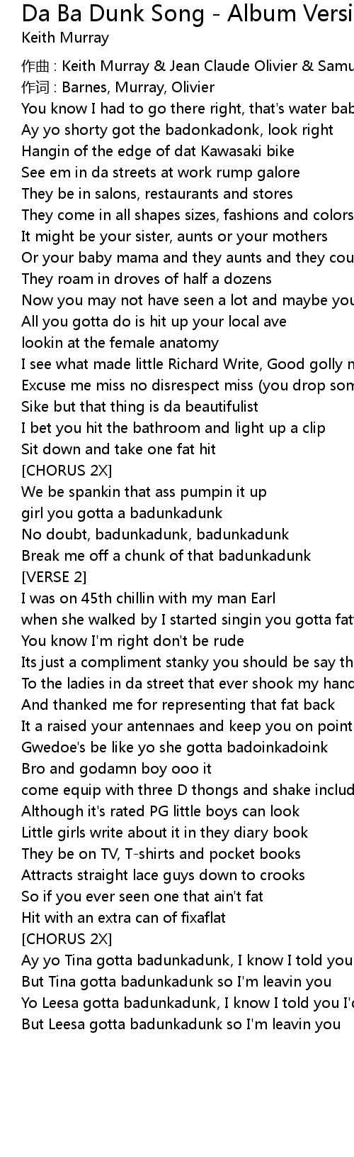 | Song | Da Ba Dunk Song - Album Version (Explicit) |