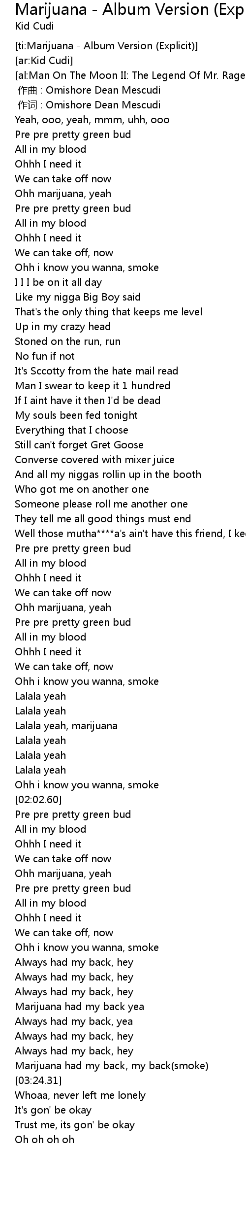 | [ti:Marijuana - Album Version (Explicit)] | |