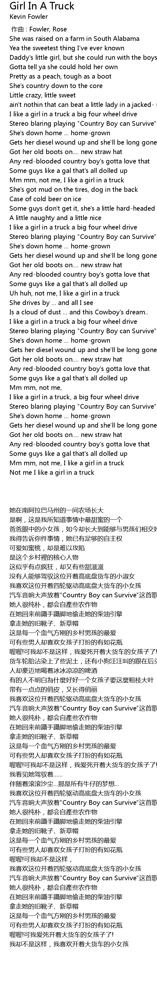 | [00:48.16] | Mm mm, not me, I like a girl in a truck |