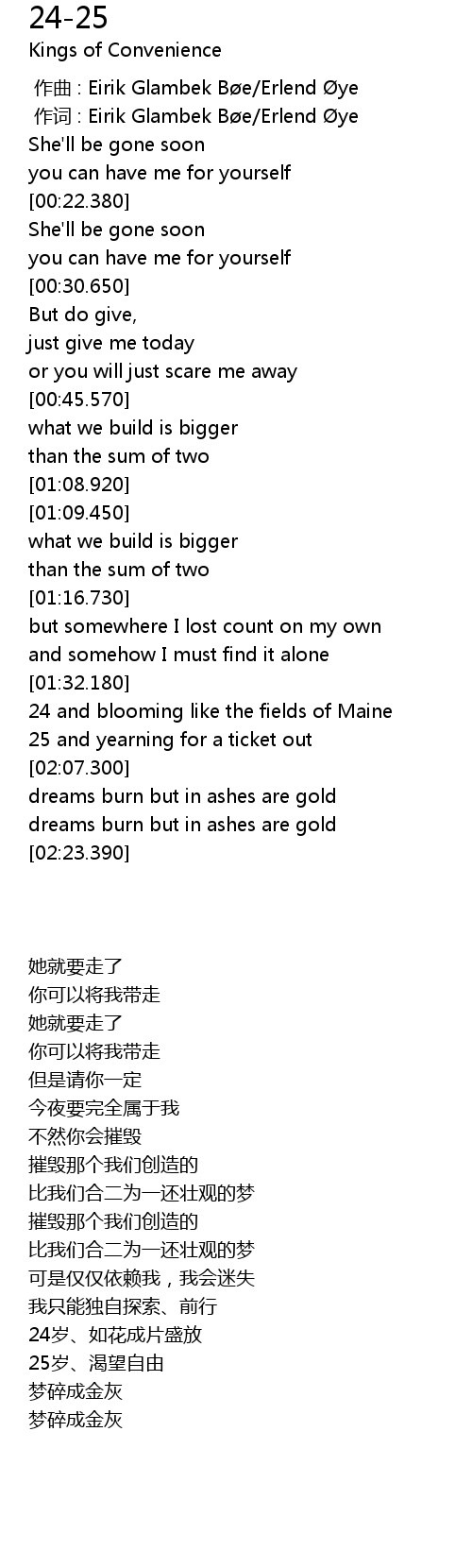 | [02:02.140] | 25 and yearning for a ticket out |