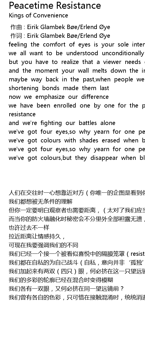 | [00:01.00] | 作词 : Eirik Glambek Bøe/Erlend Øye |