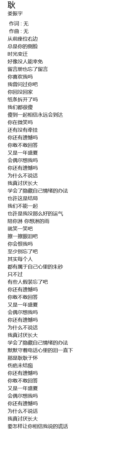 | [00:00.000] | 作词 : 无 |