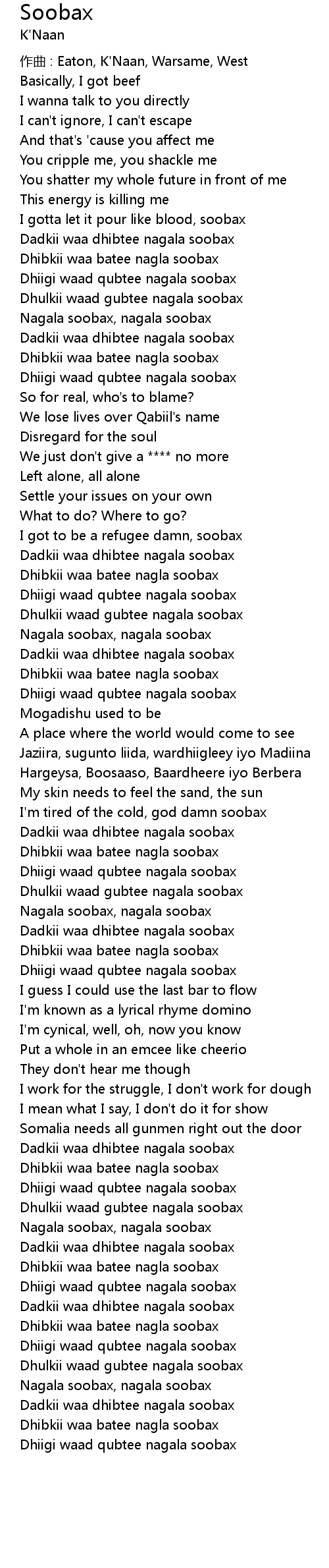 | Nagala soobax, nagala soobax | |