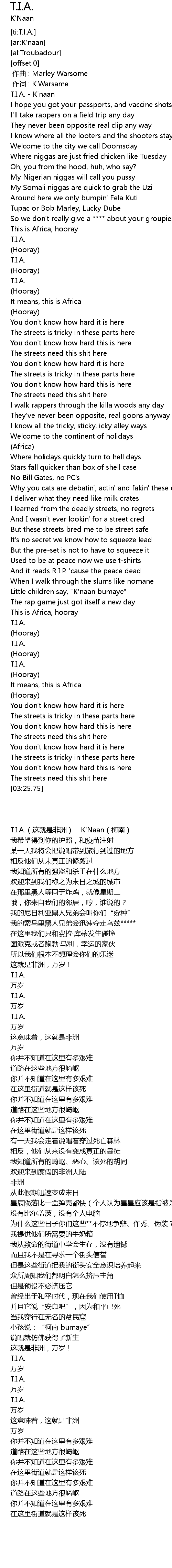 | [00:31.56] | My Nigerian niggas will call you pussy |