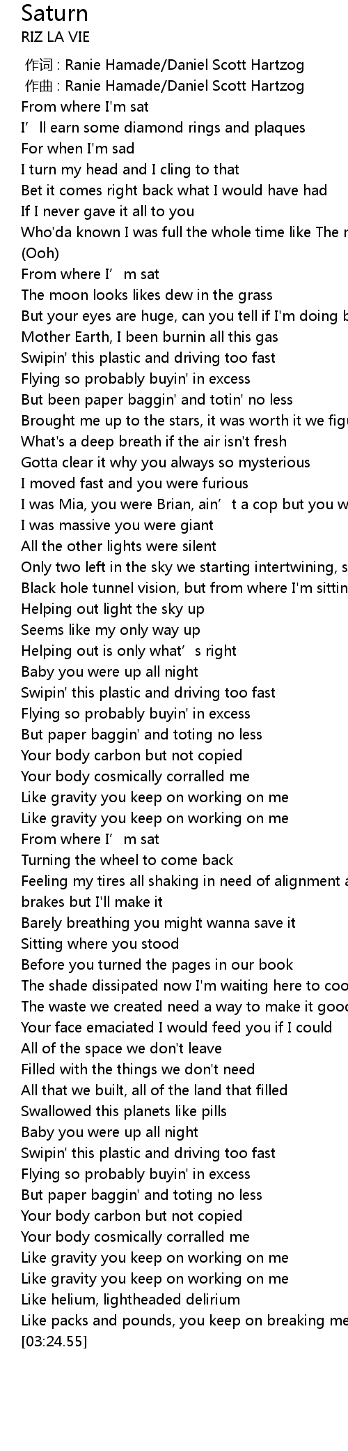 | Song | Saturn |