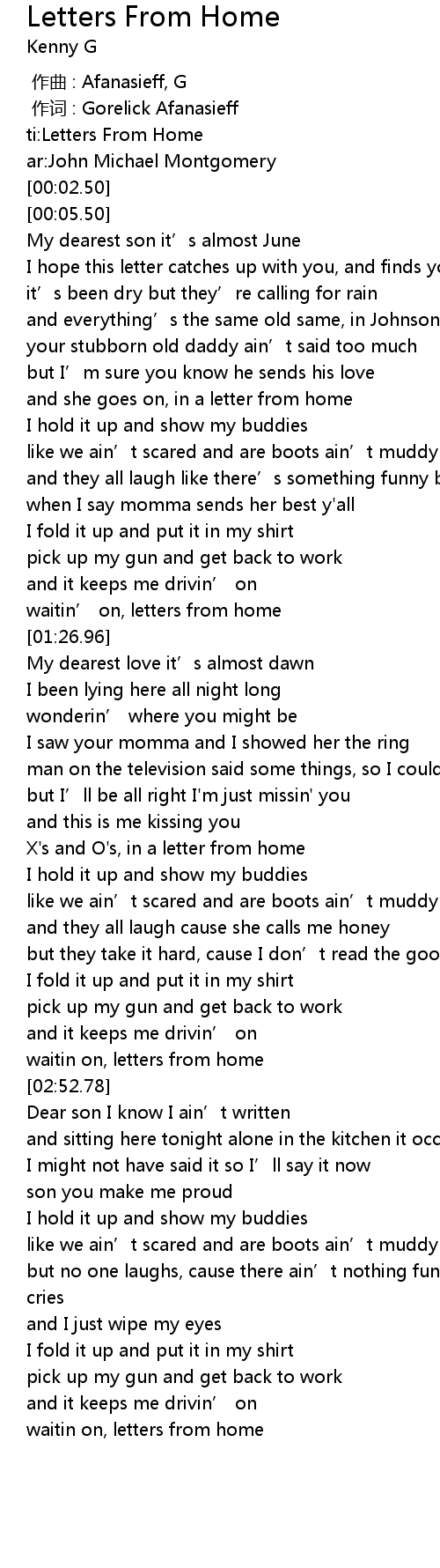 | [02:06.90] | X' s and O' s, in a letter from home |
