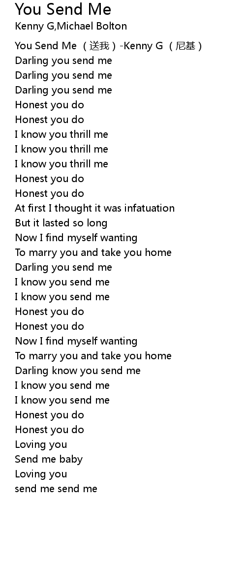 | [00:00.00] | You Send Me (送我)-Kenny G (尼基) |
