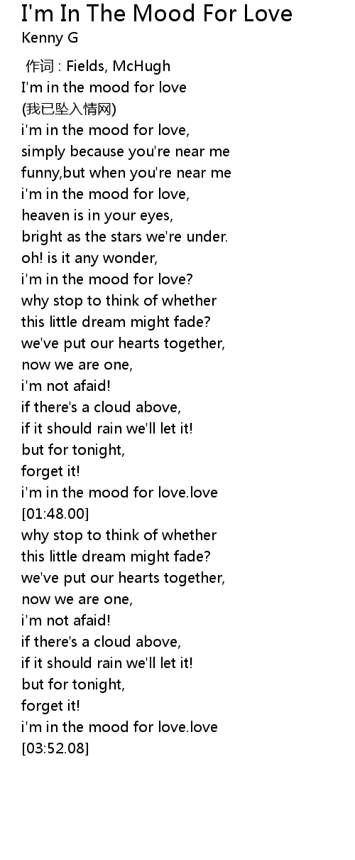 | [01:38.11] | i' m in the mood for love. love |